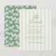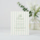 Sage green wedding details enclosure card featuring elegant vertical stripes with a chinoiserie floral accent for a refined garden aesthetic. Perfect for sharing venue information, hotel blocks, transportation, and wedding website details. Inspired by English cottagecore style, this design adds a soft romantic touch to your invitation suite while keeping your information organized and beautifully presented.