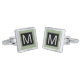 Sage Green Geometric Black Silver Monogram Cufflinks