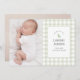 Sage Green Gingham Gender Neutral 2 Photo Birth Announcement