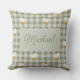 Sage Green Gingham Goose Custom Name Nursery Throw Pillow