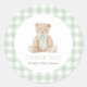 Sage Green Gingham Teddy Bear Baby Shower Classic Round Sticker