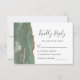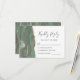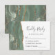 The left-hand edge of this elegant modern wedding RSVP card features a sage green watercolor agate border trimmed with faux gold glitter. The text is in charcoal gray handwriting script and copperplate font on a white background. The reverse side features a matching sage green and gold agate design.
