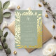 A sage green background decorated with real gold foil botanical pattern. Ivory colored text. Personalize and add your monogram initials and the details.