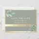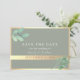 Modern save the date card with elegant eucalyptus watercolor greenery, neutral sage green background, faux gold foil accents, and romantic script. Perfect for botanical, rustic, or boho weddings.