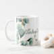 Modern eucalyptus greenery graduation coffee mug with delicate gold accents, designed to add a cohesive and stylish touch to your graduation accessories. A versatile and customizable accent for high school or college graduates' gifts.