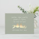Announce your wedding date in an elegant and timeless way with this sage green wedding save the date card featuring delicate gold love birds and soft minimalist typography.