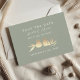 The calm neutral green background combined with warm gold accents creates a romantic, modern-classic look that is perfect for garden weddings, botanical celebrations, minimalist weddings, and elegant outdoor ceremonies.