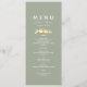 Elegant sage green wedding menu with a romantic faux gold lovebirds illustration and white minimalist typography. Perfect for spring, summer or fall receptions, this menu card complements a timeless and nature-inspired wedding theme. Fully editable with your starters, main course, and dessert. Matches the full gold lovebirds wedding suite.