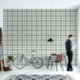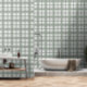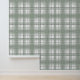 This wallpaper features a plaid pattern in sage green, gray and white.