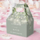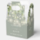 Elegant sage green floral greenery string lights wedding favor box personalized with your names, monogram initials, wedding date and special message. Designed by Thisisnotme©