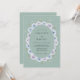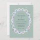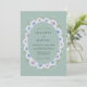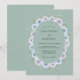 This design features a soft sage green background adorned with a botanical arrangement of watercolor florals in shades of periwinkle blue and lavender. Painterly peonies and delicate ranunculus are accented by tiny white blossoms and wispy foliage. The palette evokes a serene spring atmosphere, perfect for a romantic outdoor ceremony or a sophisticated afternoon event.