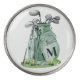 This cute monogram golf ball marker features a stylish sage green watercolor golf bag filled with clubs, surrounded by a touch of green grass. The design cleverly incorporates a simple serif font initial monogram on the bag, making it look like an integral part of the bag's design. The monogram is currently in a dark gray, almost black, to match the bag's accents, but it can be customized to your preferred color. Perfect for the lady golfer in your life, this fun and stylish golf ball marker makes a great gift for Christmas, birthdays, Mother’s Day, or any special occasion. Personalized Initial Monogram Golf Ball Marker Name Sage Green Watercolor Golf Bag Gift For Lady Golfers.