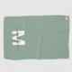Create Your Own Personalized Custom Sage Green Modern Script Name Monogram Golf Towel. This chic, feminine golf towel features a stylish monogram design with a flat white initial on a soft sage green background and a classic black script name for a personalized touch. Printed on one side, this towel adds a unique and elegant flair to any golf bag. It makes a fun and sophisticated gift, perfect for birthdays, holidays, Mother’s Day, or any special occasion when you want to celebrate someone—or treat yourself! Ideal for the golf lover who enjoys a blend of style and personalization while staying practical on the course.
