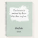 A sage green background, with a white brush stroke. Inspiratiional, motivational Quote: The future is written by those who dare to plan. Personalize and add your name and a year. Gray text.