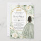 Sage Green Ivory Floral Brown Girl Quinceañera Invitation