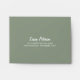 Sage green and ivory geometric / triangle-patterned wedding RSVP envelope with a return address filled out on the front. This makes it easier for your guests to return their response cards. Contact us for help with customization or matching products. Visit our store for a large selection of wedding invitations and supplies, along with beautiful things for all of your special occasions.