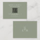 Elegant sage green QR code RSVP card with leaf monogram on the back.