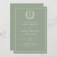 Sage Green Leafy Crest Monogram Elegant Wedding Invitation