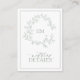 We're loving this trendy, modern sage green detais card! Simple, elegant, and oh-so-pretty, it features a hand drawn leafy wreath encircling a modern wedding monogram. It is personalized in elegant typography, and accented with hand-lettered calligraphy. Finally, it is trimmed in a delicate frame and the back of the card cotains the details, which allows the addition of the information you need to give, This may include driving directions, reception information, hotel information, etc. This can also include your wedding website.The card holds up to 20 lines of text. Text is aligned to top and flows down, you may need to adjust vertical positioning depending on the amount of text by clicking customise further. Part of a matching wedding set. See full collection here: https://www.zazzle.com/collections/sage_green_leafy_crest_monogram_wedding_invitation-119735143483526238 Contact designer for matching products to complete the suite, OR for color variations of this design. Copyright Anastasia Surridge for Elegant Invites, all rights reserved.