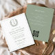 Sage Green Leafy Crest Monogram Wedding QR Code Flyer