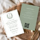 Sage Green Leafy Crest Monogram Wedding QR Code Invitation