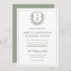 Sage Green Leafy Floral Crest Monogram Wedding Invitation