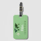 A nice and personalized sage green luggage-tag with a worldmap and an airplane
