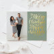 Sage Green Merry Christmas Calligraphy Photo Foil Holiday Postcard