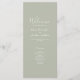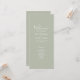 This simply designed and gorgeous Wedding Day Program card features an elegant, modern and minimal typographical design with a sage green colour theme. Ready for you to customize with the details of your Wedding Day ceremony. Please browse the Sage Green Elegant Minimal Wedding Suite for matching stationery items.
