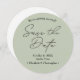 Announce your special day with our "Sage Green Minimal Wedding Save the Date Round Card." Featuring a sleek and modern design in elegant sage green, this card sets a sophisticated tone for your wedding. Personalize with your names, wedding date, QR code, wedding websites and details to make it uniquely yours. Perfect for couples seeking a minimalist and stylish save the date announcement.