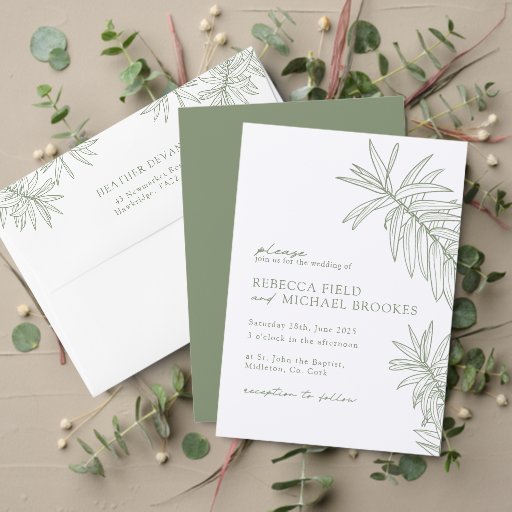 Having your Sage Green Minimalist Botanical Wedding Invitation match the theme of your party is a great detail that your guests will appreciate. The thoughtfulness of a consistent party theme is often appreciated and can show your guests that you can host a cohesive event.