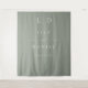 This sage green minimalist monogram wedding photo booth backdrop can be personalized with your information in chic typography. Designed by Thisisnotme©