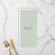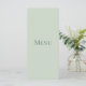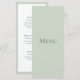 Elevate your reception tables with this elegant minimalist wedding menu card designed in a soft sage green palette. Featuring refined serif typography and a clean, vertically structured layout, this menu beautifully presents each course with understated sophistication. The balanced spacing and timeless design create a polished look that complements both classic and modern wedding styles. Perfect for garden, greenery, or neutral-themed celebrations, this menu card adds a cohesive and graceful touch to your table setting. Easily customize each course to reflect your unique dining experience.