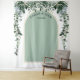 Sage Green Modern Boho Arched wedding backdrop with watercolor Botanic Greenery.