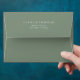 Modern, elegant sage green envelope with the address printed on the back flap features a minimalist design. Personalize with your details with the easy to edit template featuring a classy serif font.