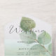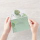 AVAILABLE WITH OR WITHOUT A QR CODE TO SCAN. This design has a soft green watercolor ombre wash background with a single sprig of gold stemmed eucalyptus. Fresh and beautiful! Add a QR code to your invitation so that gusts can quickly access your wedding Website for details, directions, menu options, and more, or add your gift registry Web URL. Personalized All-In-One invitations are a unique combination of both a beautifully printed custom invitation with an easy to tear off perforated RSVP postcard. And they are so easy to use! You simply fold, then seal the back flap with the three included clear stickers, and mail. And when your guests receive your custom invite, they just tear the perforated RSVP Card off and drop it back in the mail to you!