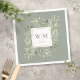 Featuring delicate watercolor greenery leaves on a sage green background, these chic botanical paper napkins can be personalized with your monogram initials and special date. Designed by Thisisnotme©