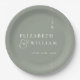 Sage Green Modern Minimalist Monogram Wedding Paper Plates