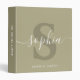 Sage Green Modern Monogram Name Initials Script 3 Ring Binder