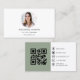 Sage Green Modern Photo with QR Code Social Media Business Card