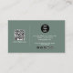 A beautiful design incorporating your business logo and your QR Code. This elegant sage green modern script business card is ideal for all types of businesses. A simple and professional way to introduce your business. Social media icons included in the design of this business card for you to use. Personalize your details to create your own unique business card.