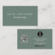 Sage Green Modern Script QR Code Social Media Business Card