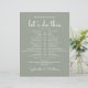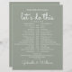 This stylish wedding schedule-timeline can be personalized with your wedding details set chic white lettering on a sage green background. Designed by Thisisnotme©