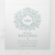 Muted sage gray green hand-drawn growing leaf botanical art square-shaped wedding program with your own love story and remembrance sections. Personalize this wedding trifold program with your own wedding ceremony details, party names, love story, and dedications. Simple leaf design circling your own monogram initials in white and sage green. Other colors and matching wedding items available. © Original leaf drawing and design by Sarah Trett for www.mylittleedenweddings.com on Zazzle.