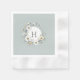 This exquisite napkin features a custom monogram centerpiece, encircled by a delicate wreath of white and cream flowers set against a serene sage green background. Perfect for adding a touch of elegance to any table setting, these napkins blend classic charm with personalized flair. Ideal for weddings, bridal showers, or any special event requiring a sophisticated touch. The neutral color palette complements a wide range of dinnerware and decor, making these napkins a versatile choice for enhancing your dining experience.