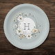 This sophisticated plate design features a custom monogram at the center, surrounded by a delicate wreath of white and cream flowers on a rich sage green background. The elegant floral motif adds a touch of natural beauty, making it perfect for special occasions like weddings and bridal showers, or as a charming addition to everyday dining. The sage green background brings a serene and earthy feel, harmonizing beautifully with both modern and traditional table settings. This plate not only serves as functional dinnerware but also as a decorative piece that personalizes and elevates any meal.