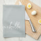 Minimalist Modern Elegant Sage Green Monogram Name Signature Script Custom Personalized Kitchen Towel. Featuring custom name in a hand lettered swash tail font calligraphy (or typography) on sage green or dusty green color background. These are easy to customize it. Great stylish feminine housewarming gift, mother’s day, wedding, also for birthday, bridal shower and It’s for the girl who loves unique feminine minimalist things.