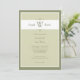 Plain white envelopes are included with paper invitations and will come to fit the invitation size you select. If you don’t need the envelopes, you may choose to not receive them by selecting the dropdown below "Envelopes" and choosing "None." If you’d like to have a design on your envelopes, you can browse all of these available envelopes to find the design that complements your Sage Green Monogram Wedding Invitations.