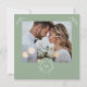Announce your upcoming celebration with our Sage Green Monogram Wedding Save the Date cards, each adorned with a customizable photo of the happy couple. These cards not only feature the timeless design of the monogram and classic elegance but also provide a personalized touch with your cherished engagement photo. Set the tone for a timeless and elegant wedding, sharing the joy of your love story with friends and family in a sophisticated and memorable way.