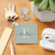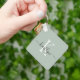 This modern sage green keychain with your first name in a trendy script font in black and your first initial in a modern cap font in white is perfect for your keys.